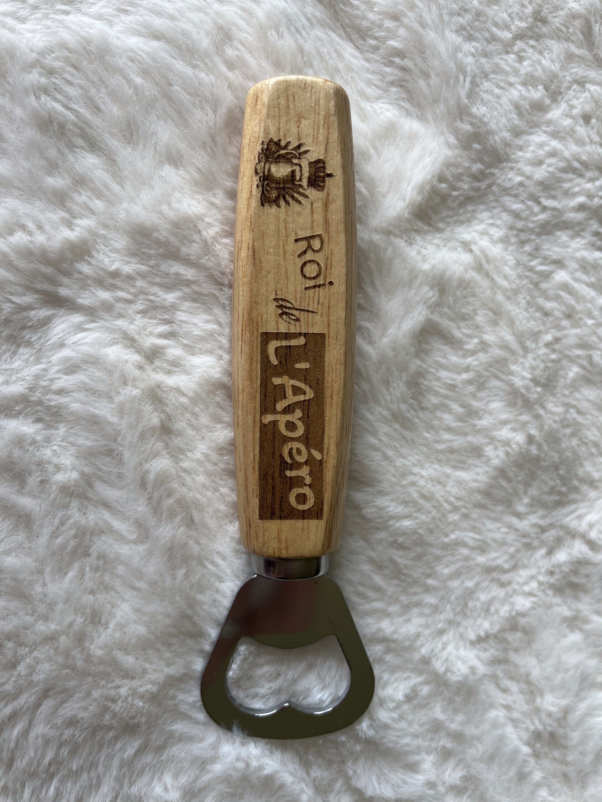 Ce décapsuleur en bois gravé au laser transforme un objet du quotidien en cadeau personnalisé plein de caractère. Idéal pour un anniversaire, une fête, un EVG, la fête des pères ou un apéro entre amis, il allie praticité, style naturel et gravure durable.